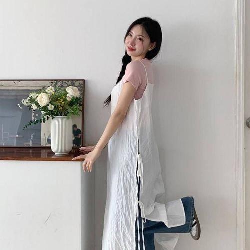 [에이치플러스몰]롱니트 끈 여름 여성 데님 온나핏 나시 뷔스티