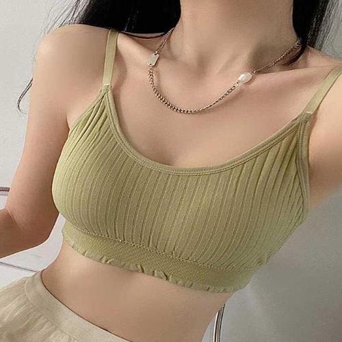 더블끈 골지 민소매 나시 티셔츠 여성 여름 티셔츠 브라캡 노브라 나시티