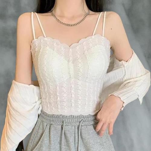 [신상오픈런]여성 레이스 이중끈 나시 브라탑 캡내장 웨이브 디자인 (38768120)