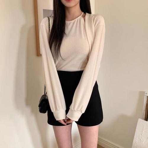 [다잇템]여자 반전 홀터넥 뒤 끈 볼레로 나시 세트