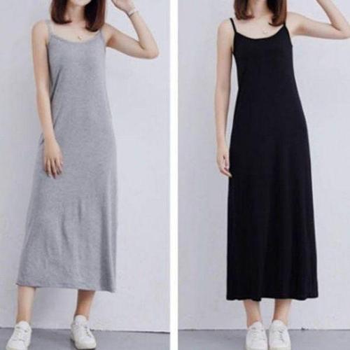 [에이치플러스몰]롱원피스 베이직 민소매 끈나시 신축성 올데이 무지