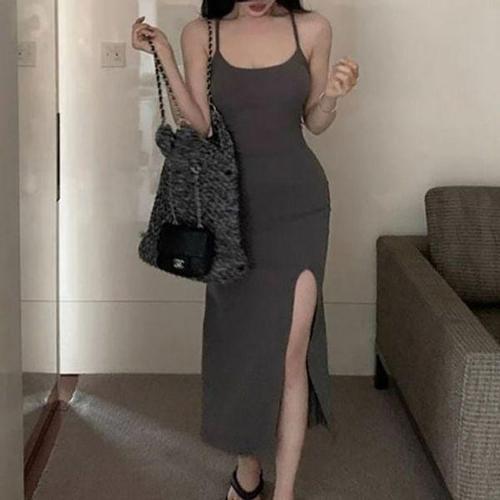 [에이치플러스몰]스트링조절 모던핏감좋은 슬릿 끈나시롱원피스