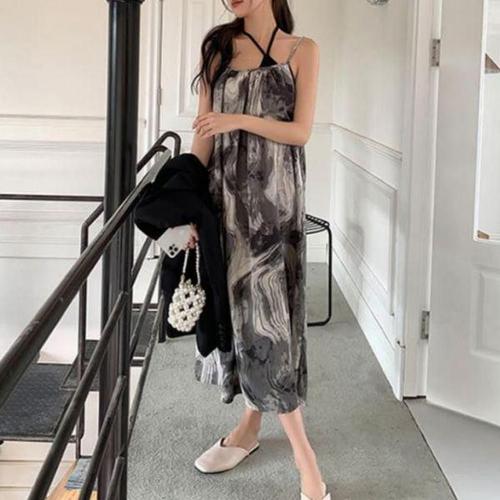 샵앤) 여성 끈나시 휴양지 기하학 롱원피스 CAT-WDR-4641-진그레이