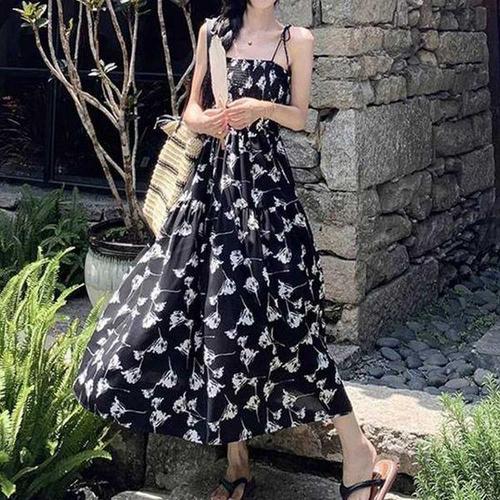 [에이치플러스몰]여행 롱원피스 여름 휴양지룩 여성 끈나시 1P 플라워