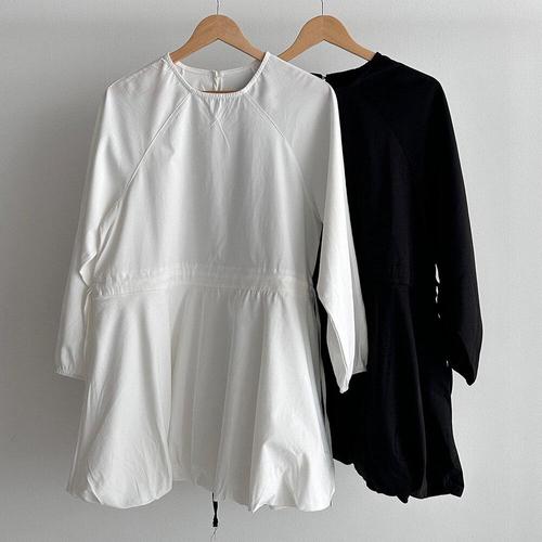 [옷자락]여성 리본끈 셔링벌룬 나그랑 미니 원피스