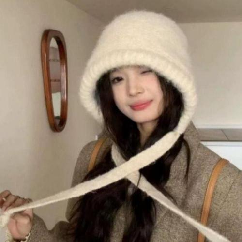 [에이치플러스몰]여성 겨울 니트 벙거지 끈모자 1P 방한 보온 패션