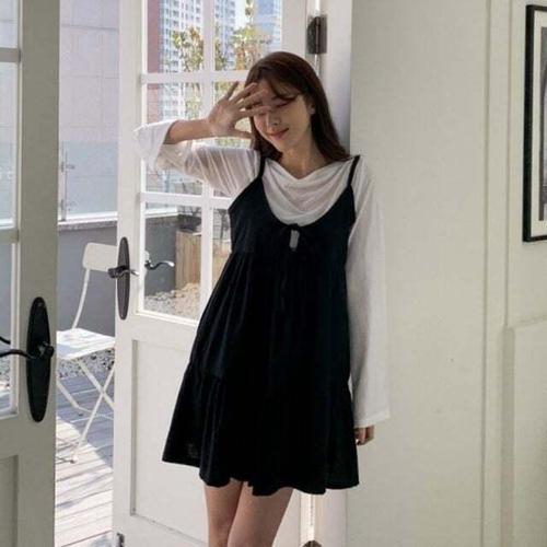 [셀럽하우스]여름 XXCJ6211 인기 캐주얼 레이어드 끈나시 감성 원치스 치마