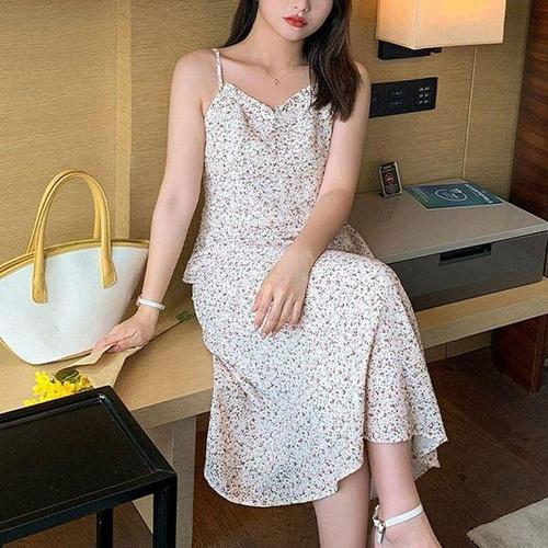 [에이치플러스몰]여성원피스 1P 꽃무늬 어깨끈 여름 나시 바캉스 치마