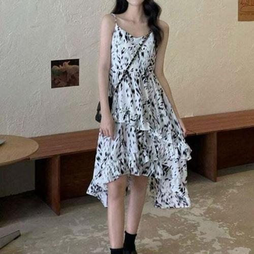 [셀럽하우스]롱원피스 VERX9582 캉캉 프린팅 치마 끈나시 ST020 원피스