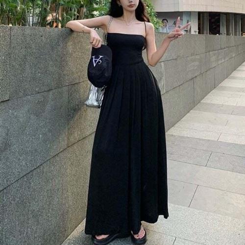 LND 러플 스트링 끈나시 롱 원피스 여성 여름 치마 민소매 여자
