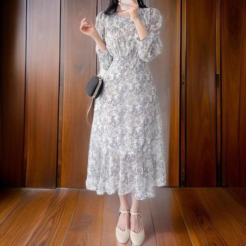 [신상오픈런]플로럴 쉬폰원피스 하객 리본끈 여성스러운 살랑 (31546070)