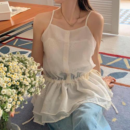 여자 민소매 여름 이너 청순 레이스 끈나시 화이트