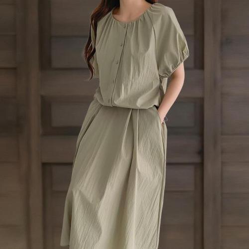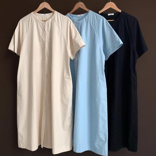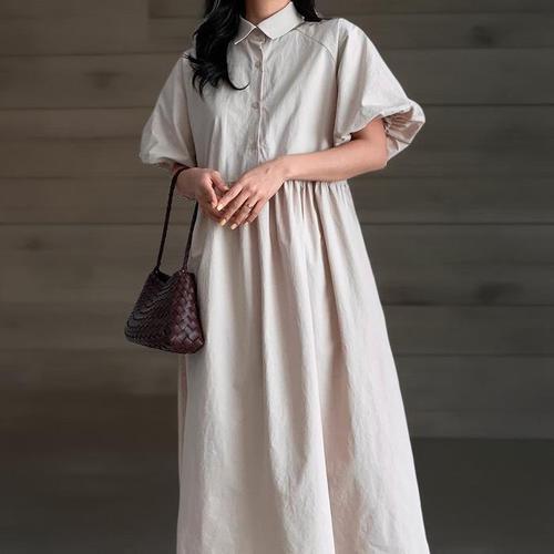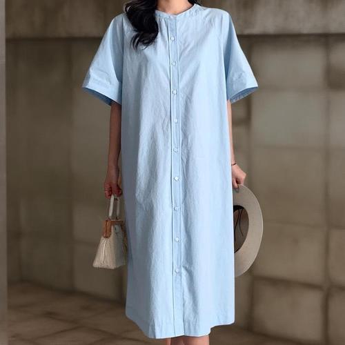 [신상오픈런]여성 여름 나그랑소매 롱 원피스 라운드넥 박시핏 단추포인트 (35333377)