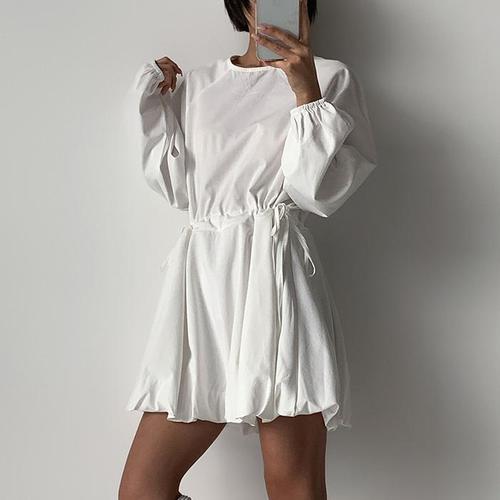 [신상오픈런]여성 가을 하객용 스트링 나그랑 퍼프 벌룬 미니 원피스 (41913455)