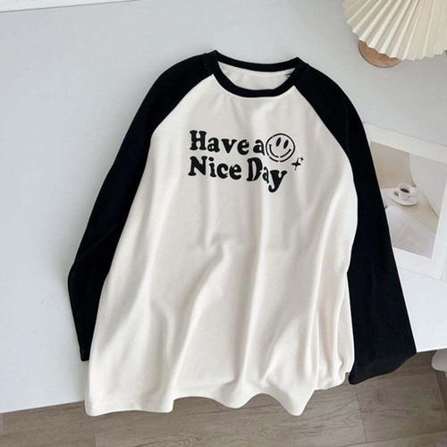 [다잇템][다잇템] 여성 필기체 롱슬리브 키치 라글란 콘트라스트 무드 티셔츠_23196733_588872