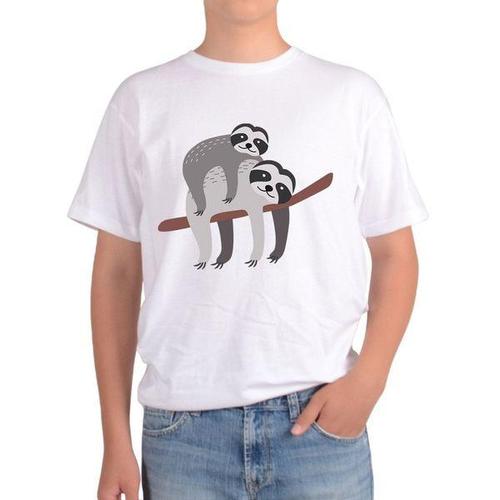 [에이치플러스몰]반팔 라운드티 나무늘보 가족 여유 느림보