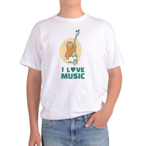 [에이치플러스몰]반팔티 나무늘보 음악 I Love music 천천히 살아가는
