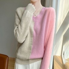 나바바 NK2498 여성 캐주얼 배색 라운드넥 긴팔 니트티