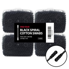 파인듀 검정 나선형 면봉, 200개입, 4개