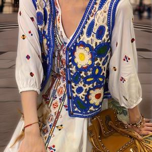 TEMU 여성용 녹색 자수 풍경 조끼 - 캐주얼 V넥, 슬리브리스 니트 카디건, 꽃과 나무 디자인, 가을/겨울 패션, 가을 겨울 의류 | 꽃 자수 | 니트 원단, 스웨터 조끼