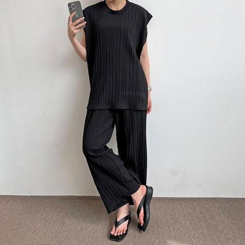 [에이치플러스몰]폴드 맞주름 나시 반바지 세트 OD-230525