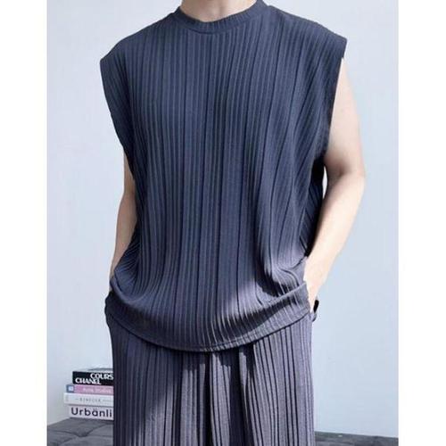 [셀러허브_여성트랜드패션]플리츠 남성 상하세트 밴딩팬츠 민소매 DJJ58 주름 바지