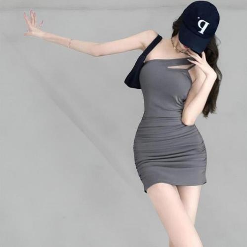 [신상오픈런]여성 슬림핏 셔링 민소매 미니 원피스 사선 트임 (39186995)