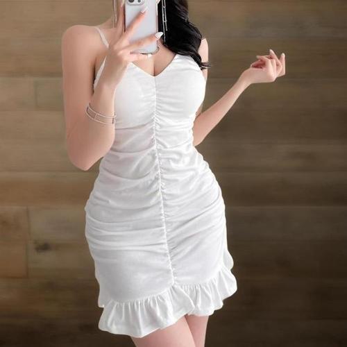 [신상오픈런]여성 프릴 셔링 미니 원피스 볼륨업 나시 드레스 (38283965)