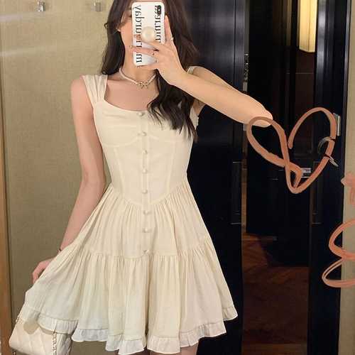 슈팅스타 / 로맨틱 하객 코튼 시원한 콩단추 나시 프릴 미니 원피스