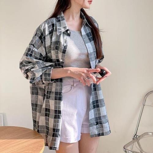 [신상오픈런]나염셔츠 봄여름 긴팔 아우터 빅사이즈 체크남방 (30090579)