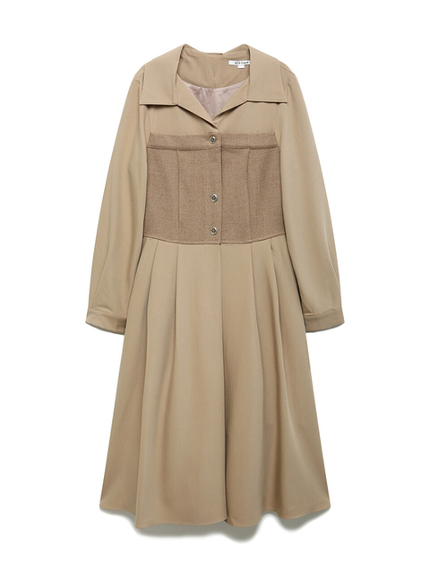 [나이스클랍] N252MWO319 핀턱 디테일 벨티드 원피스 베이지 다크네이비