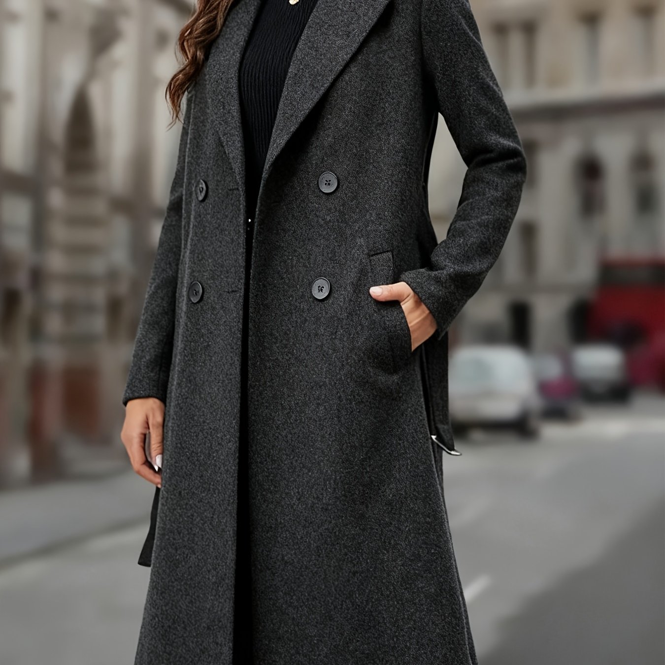 TEMU 가을-겨울 신상 여성 솔리드 컬러 롱 코트, 유럽 & 미국 스타일 다용도 클래식 싱글 브레스트 허리벨트 더블 버튼 칼라 긴팔 트렌치코트