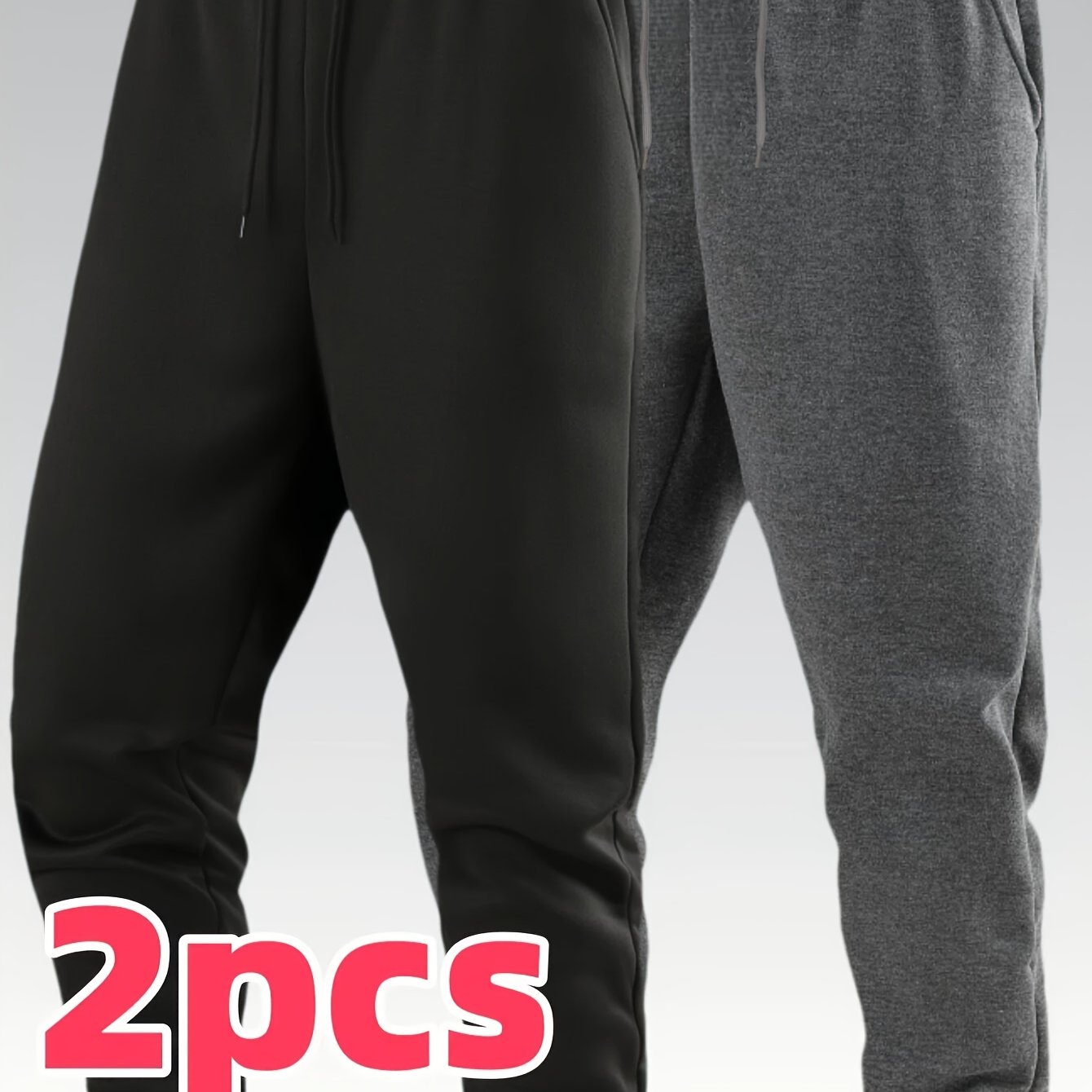 TEMU 2개 남성용 캐주얼 조거 팬츠, 탄성 허리 밴드 & 드로스트링 - &, 신축성 없는 원단, 데일리, 직장, 러닝, 피트니스용 레귤러 핏