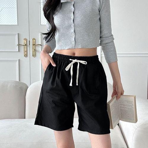 TEMU 여성 캐주얼 드로스트링 허리 & 사이드 포켓 반바지 - 가볍고 사계절 내내 편안함, 레귤러 핏, 집 & 야외 활동에 적합, 캐주얼 웨어, |캐주얼 스타일 반바지|드로스트링 허리 반바지