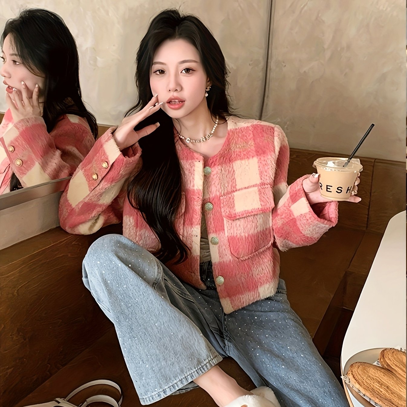 TEMU 클래식 엘레강스 스타일 트위드 숏 코트 여성용, 신상 가을/겨울 두꺼운 가디건 탑, 세련된 레이디 매력|가디건|빈티지