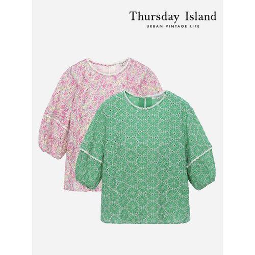 [써스데이아일랜드]펀칭 레이스 볼륨 블라우스(T244MBL353W)