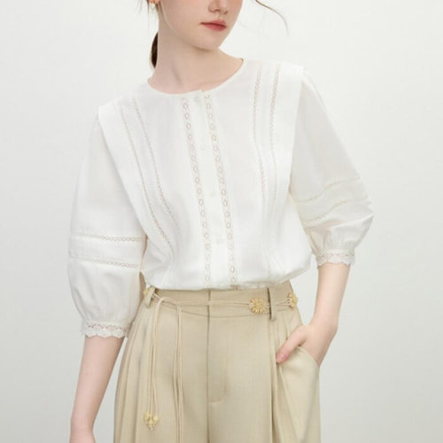 [신상오픈런]여성 아이보리 레이스 펀칭 7부 라운드넥 블라우스 (40854430)