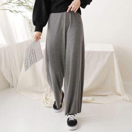 [에이치플러스몰]여성 통 바지 나팔 와이드 팬츠 밴딩 면 키작녀 ac