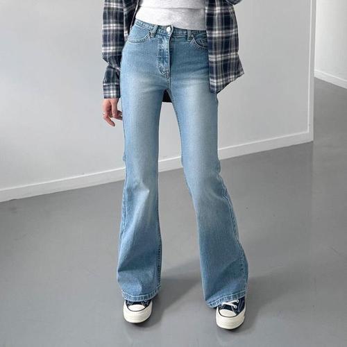 [신상오픈런]부츠컷데님팬츠 라이트블루 워싱 여성 나팔바지 스판 (31645625)