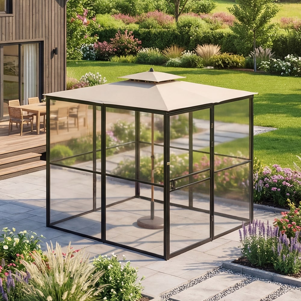 스퀘어가든 2.5M 프레임 파라솔 미포함 야외 투명벽 글램핑 캠핑 그늘막 테라스 정원 옥상