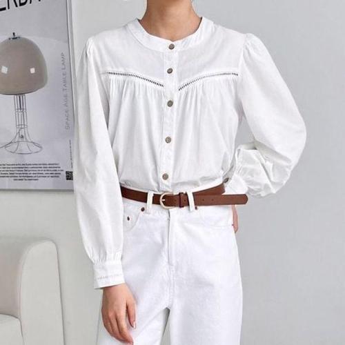 [셀러허브_여성트랜드패션]남방 펀칭 모던 HL] 노카라 페미닌 퍼프소매 셔츠