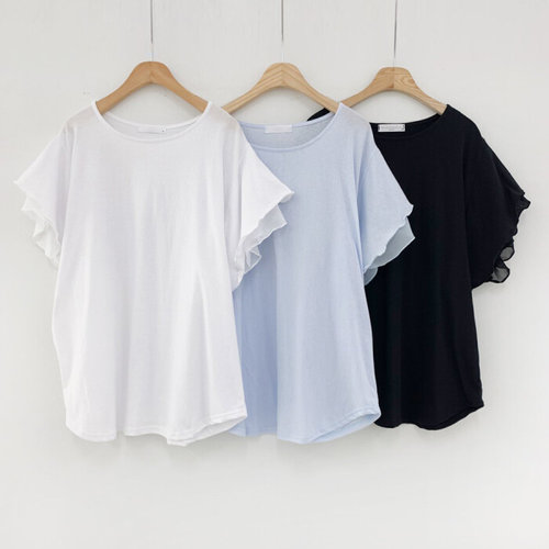 나야홍 / 빅사이즈쉬폰티 E163L505 소매날개프릴반팔티 ZY