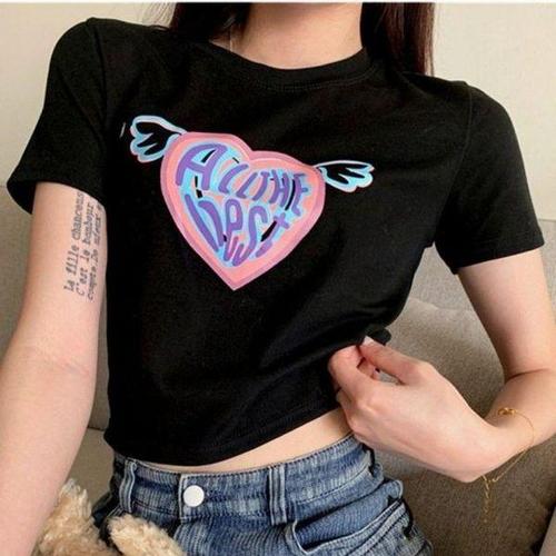 [에이치플러스몰]하트 인기 날개 프린팅 여자 감성 여름 라운드 반팔