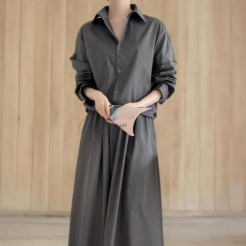 [유야]여성 밑단스트링 카라 셔츠 밴딩 롱스커트 세트 -FSST0108- 봄 가을