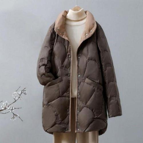 [에이치플러스몰]간절기 오리털 하이넥 퀼팅 여성 패딩 배색 코트 점퍼 경량 점퍼 여성 여자 작업 남자 ..