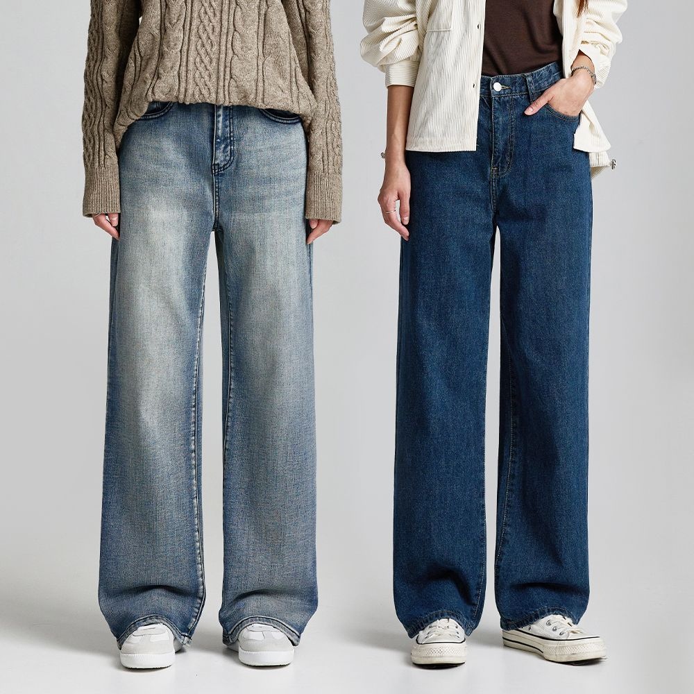 겨울 양털 남성 따뜻한 청바지 느슨한 넓은 다리 두꺼운 열 레트로 데님 바지 패션 스트레이트 streetwear 플러시 바지