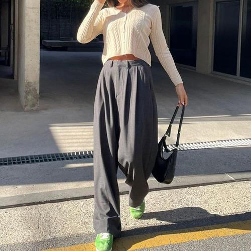 [신상오픈런]리본슬랙스 빅사이즈 놈코어팬츠 와이드슬랙스 봄바지 (30321906)
