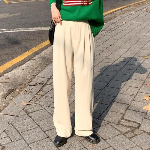 [신상오픈런]핀턱슬랙스 봄개강룩 허리밴딩 크림색 와이드팬츠 (30266402)