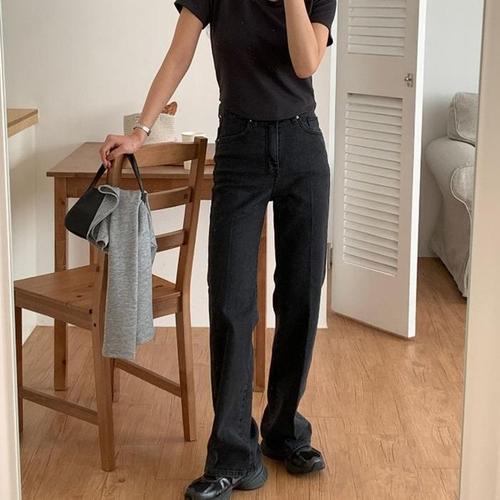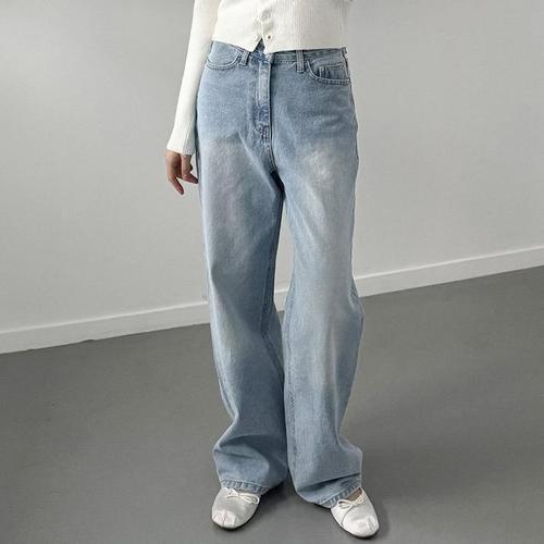 [신상오픈런]스트레이트진 논스판 봄코디 워싱 와이드데님팬츠 (31641888)