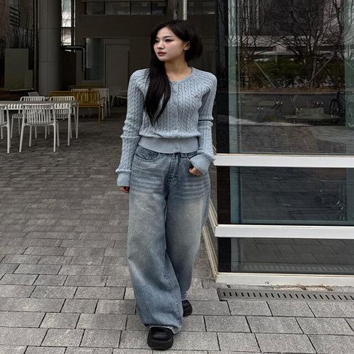 [원스톤][26SS] 미브 밑단 스냅 데님 팬츠 1color 와이드 봄 신상 빈티지 워싱 테이퍼드